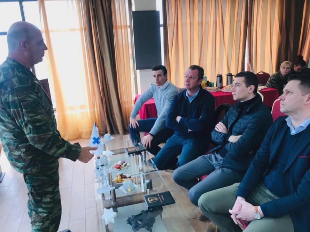 General Choudeloudis briefs Dries Van Langenhove, Jérôme Rivière, Jordan Bardella and Tom Vandendriessche on the situation at the frontier.