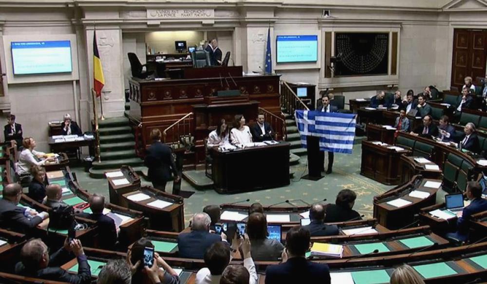 Van Langenhove in a fiery speech accused the Belgian prime minister of being co-responsible for the migratory crisis, in which he also raised the Greek flag.