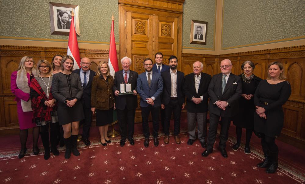 John O'Sullivan with members of the Friends of Hungary Foundation at the Hungarian Parliament on February 12, 2019.