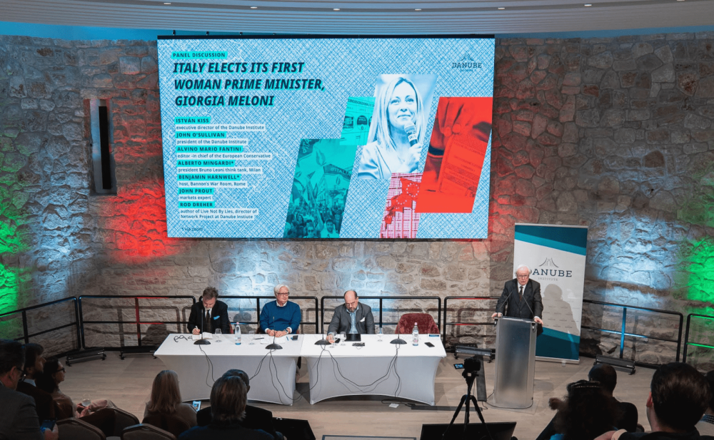 TBG listed also the Dignititas Humanae Institute as a partner, which had aided the American far-right figurehead Steve Bannon in the failed setup of a far-right cadre school in an Italian monastery. As of 2023, DHI's director Benjamin Harnwell is a “Research Fellow for Judeo-Christian Western Civilisation” at TBG.57 In early October 2022, O'Sullivan's Danube Institute invited Harnwell, TEC's editor-in-chief, Alvino-Mario Fantini, and others to an event celebrating the election of the neo-fascist Giorgia Meloni as prime minister of Italy.58